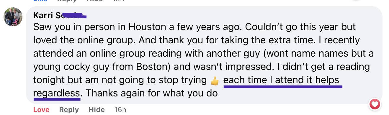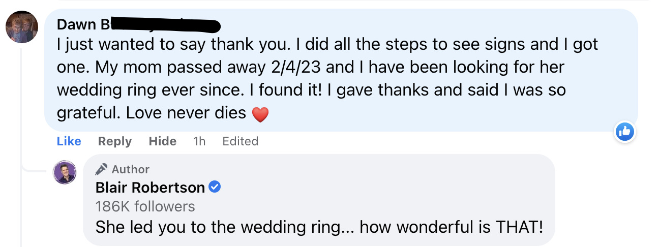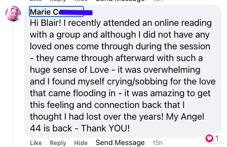 At that moment I knew she had passed away. Although I was aware of the spiritual world, this was my first contact with my own deceased loved one and validation that there is “life” afterlife.